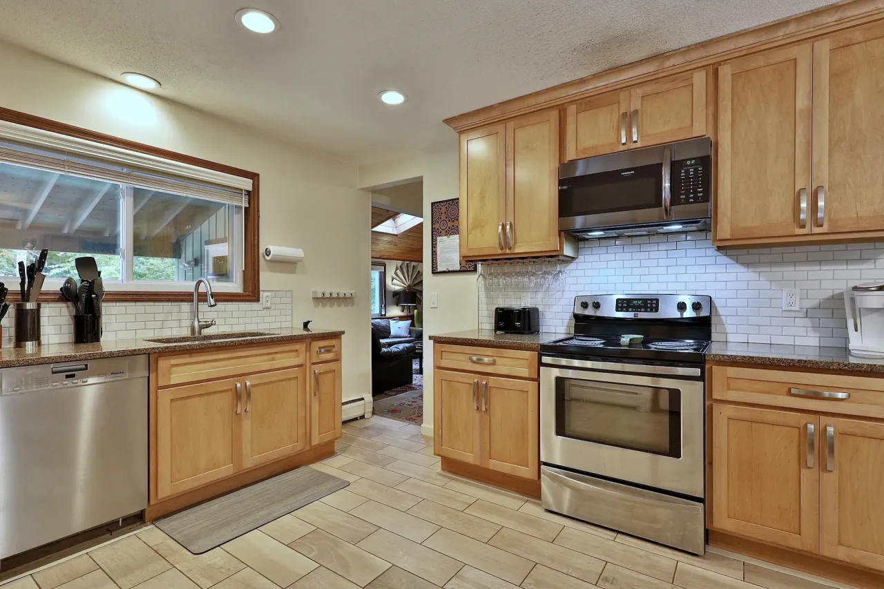 Designed for groups who want to spread out but stay connected. Explore local things to do in Killington or check our Killington Area Guide. From the dual living areas and dedicated workspace to the large deck and wooded surroundings, it’s the ultimate basecamp for your Vermont adventures.